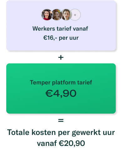 Geen verplichtingen, geen vooruitbetalingen. Eenvoudig op- en afschalen. Betaal alleen voor de gewerkte uren. Ontdek de voordelen van Temper’s geheel transparante prijsmodel.